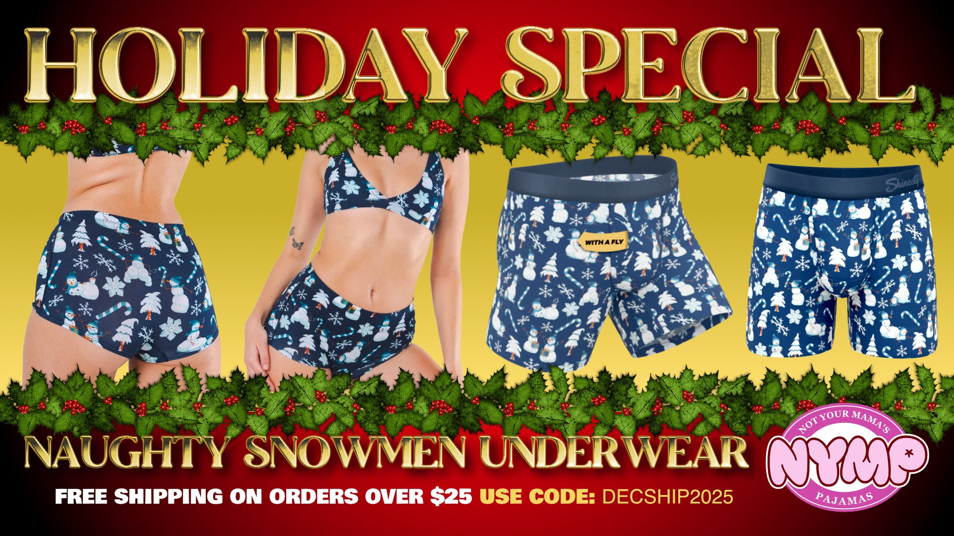 Playful, cheeky, and a little bold. These naughty snowmen undies keep things fun whether you’re gifting them or wearing them yourself. Get FREE shipping on orders over $25 by using the code: DECSHIP2025