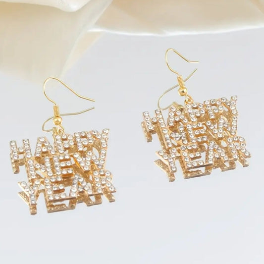 Happy New Year Earrings-Gold