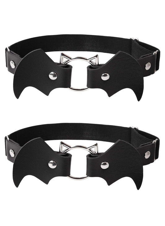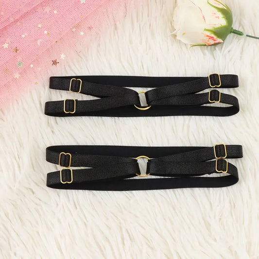 Black Elastic Thigh Garters with Adjustable Cross Straps-Gold