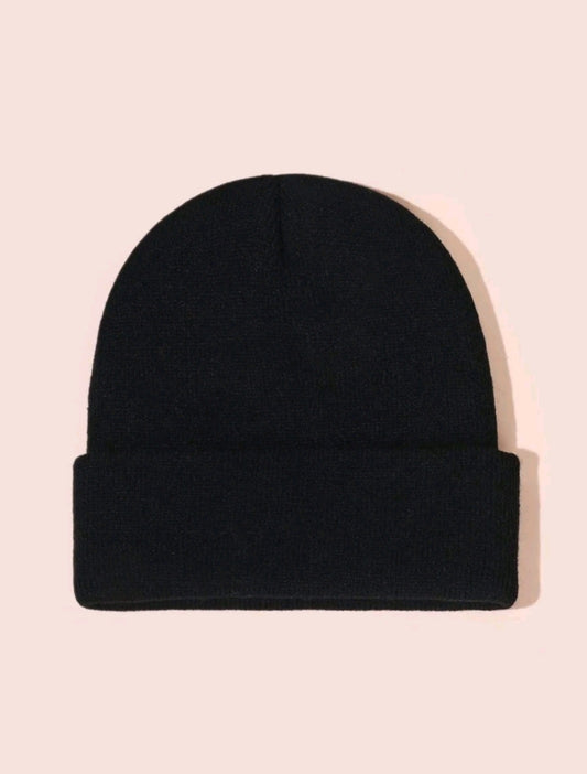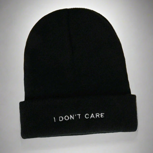 Embroidered I Don't Care Knit Beanie-Black