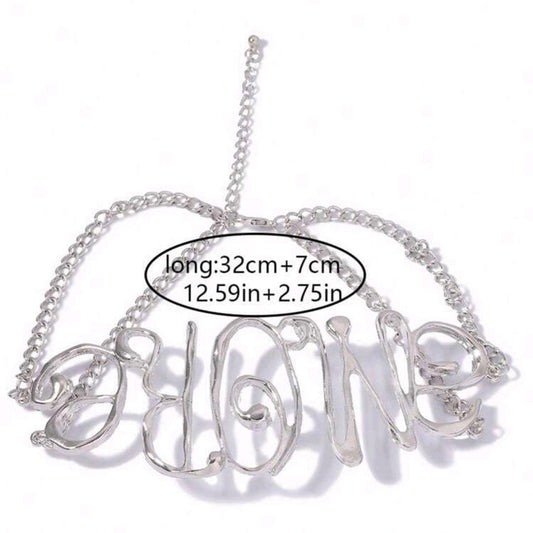 Hip-Hop Style Women's Hollow Out Letter Necklace-Silver Amore