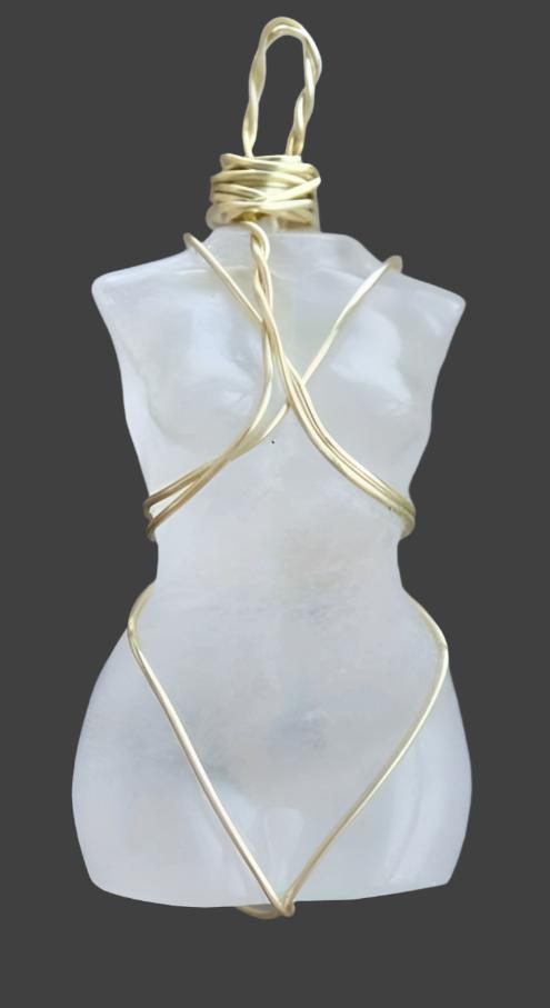 Natural Crystal Quartz Goddess Pendant Necklace-White Opal