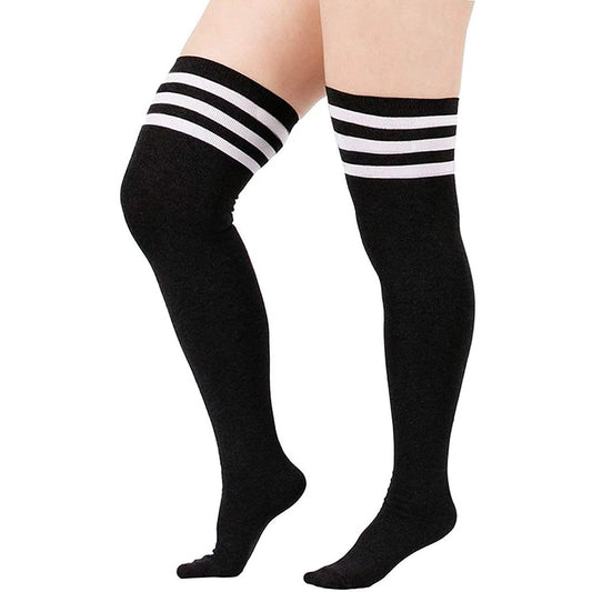 Plus Size Women's Thigh High Socks-Black and White Stripe