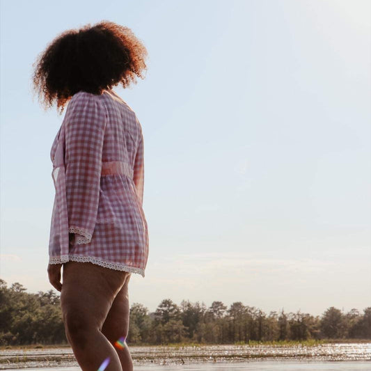 Bata de gasa a cuadros en rosa y blanco Brava de Kilo