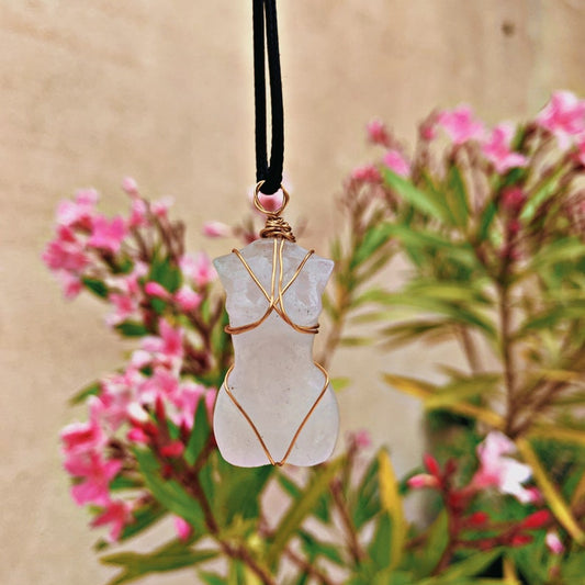 Natural Crystal Quartz Goddess Pendant Necklace-White Opal