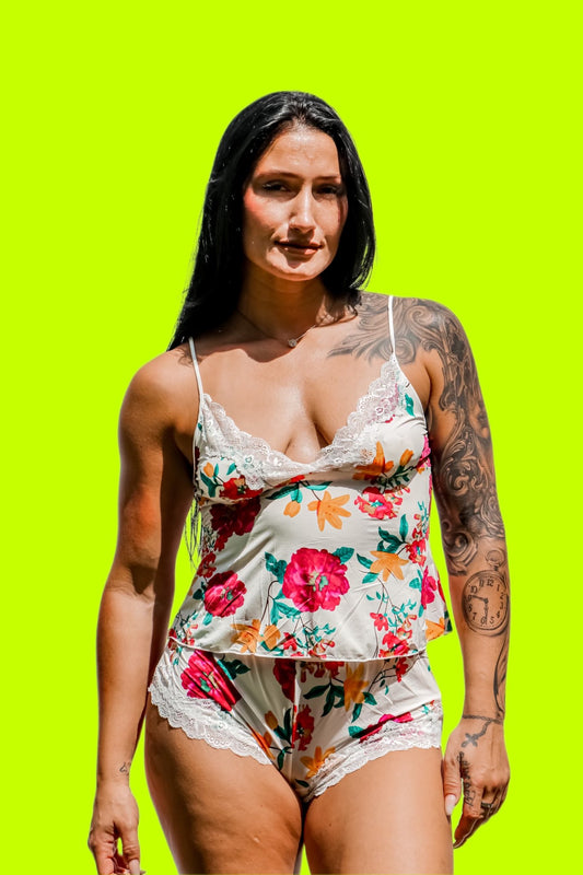 Camisola de copa triangular con lazo en la espalda y pantalones cortos a juego de Oh La La Cheri