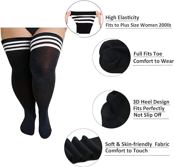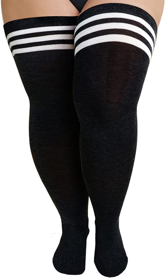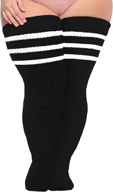 Plus Size Women's Thigh High Socks-Black and White Stripe